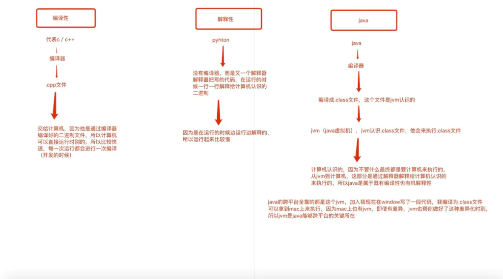 三:java说的是解释型语言,但是就如上面所讲,java既有编译的成分也有解释的成分,java的跨平台靠的是他的jvm即java虚拟机