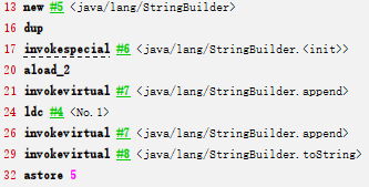 dup 就是将存在操作数栈上的StringBuilder对象的引用复制一份再压入操作数栈