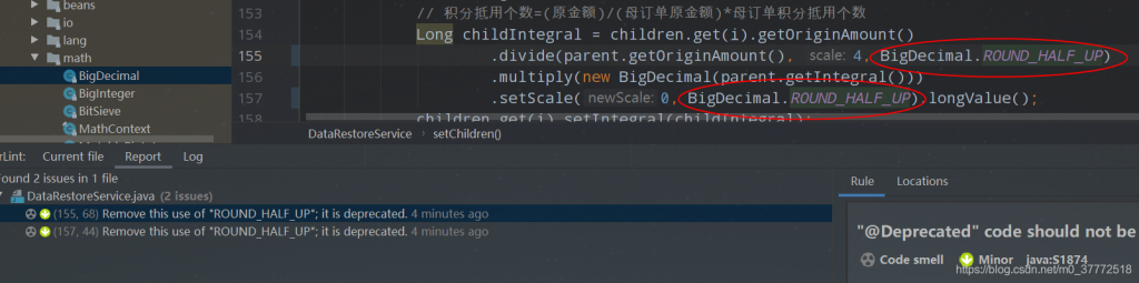 项目中涉及到计算金额的, 部分代码如下, 编译器提示ROUND_HALF_UP is deprecated. 不推荐使用.