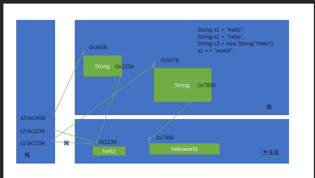 String 指向常量池的数据,不能做任何的修改,如果需要修改必须新造一个数据,用来存储新的内容
