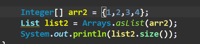 asList()方法传入的参数不能是基本类型的数组,必须包装成 包装器类型再使用,否则对应生成的列表的大小永远是 1