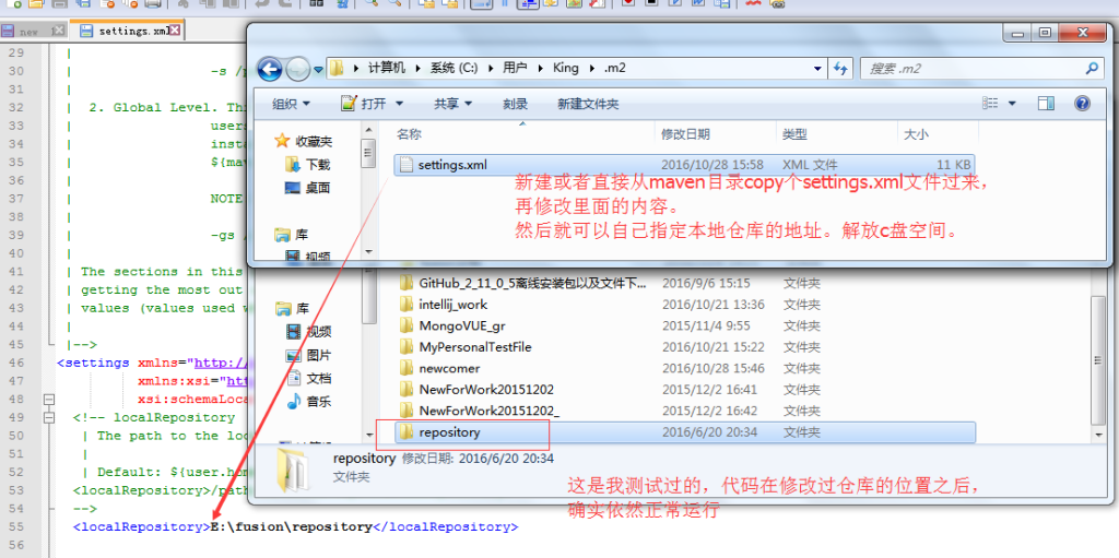 先备份自己的仓库文件即.m2目录下的repository文件夹,然后把这个文件夹移动到其他地方,直接在c盘移动快(这个只为测试啦,要是测试OK,肯定移动到c盘之外的其他盘),因为仅仅是重写了个目录指针而已,文件实际没动。