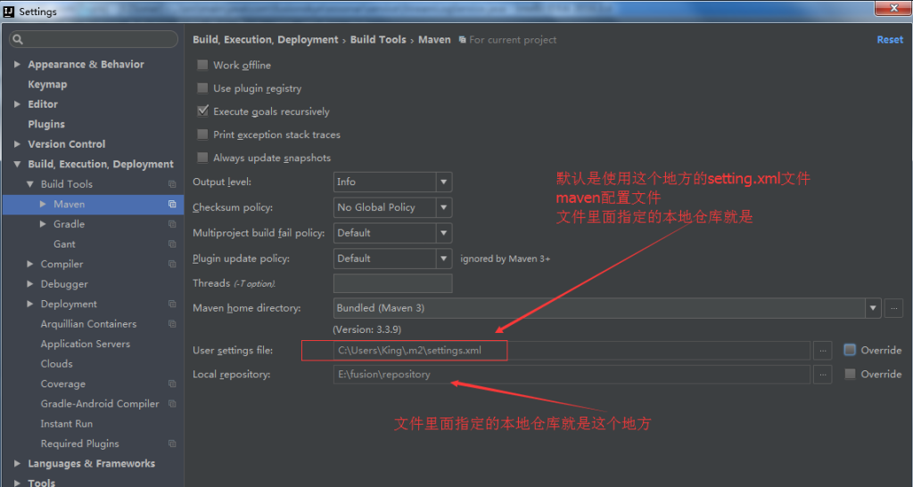 然后再新建settings.xml文件,修改你的对应目录,完之后再看你的项目,发现原来的报错就消失了。当然,编辑器得有个重新建索引的时间。