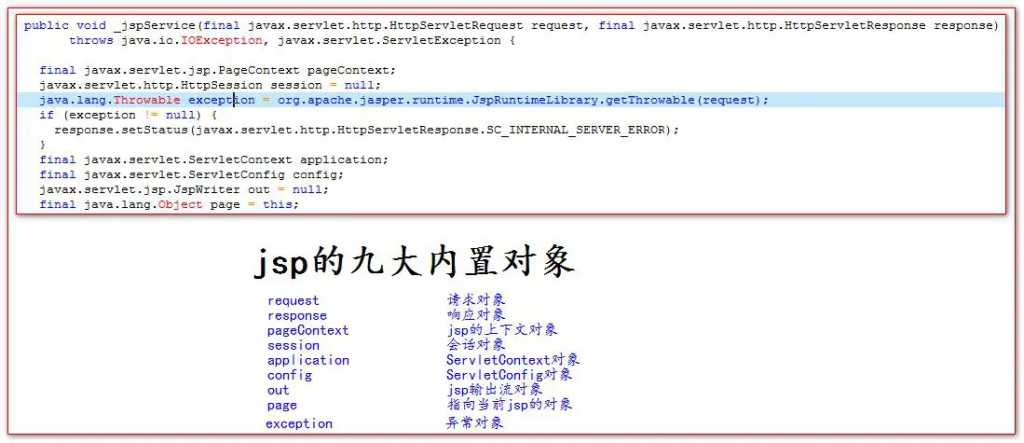 大家也可以去观察翻译出来的 Servlet 程序的源代码,不难发现。其底层实现,也是通过输出流。把 html 页面数据回传给客户端。