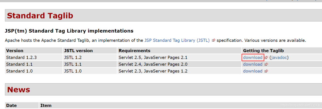 1、进入官网:http://tomcat.apache.org/taglibs/standard/