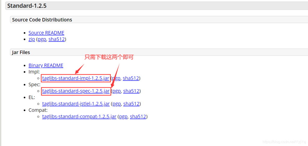 如果不使用JSTL1.0标签,可以忽略taglibs-standard-jstlel包, README没有介绍taglibs-standard-compat包,估计应该是兼容以前版本标签库, 所以一般只需要 taglibs-standard-impl 和 taglibs-standard-spec 两个jar包