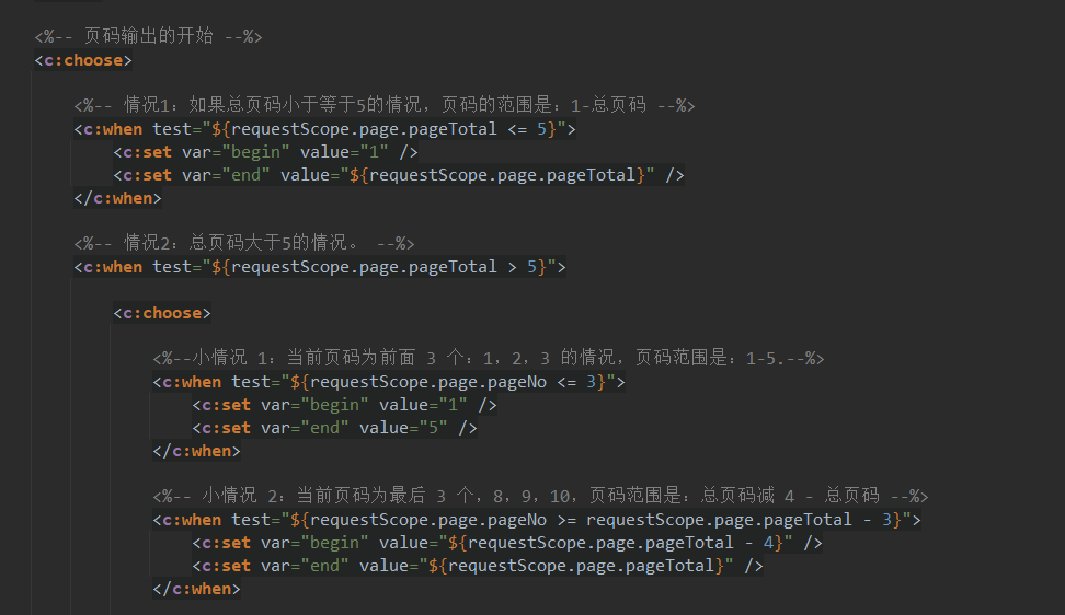 小情况 2:当前页码为最后 3 个,8,9,10,页码范围是:总页码减 4 – 总页码