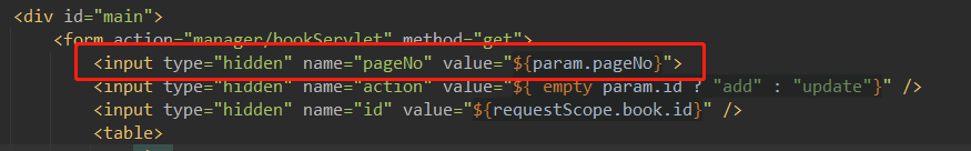 2、在 book_edit.jsp 页面中使用隐藏域记录下 pageNo 参数