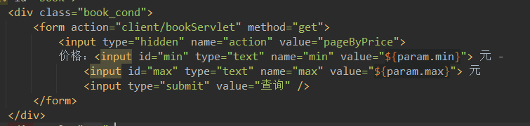 价格:<input id="min" type="text" name="min" value="${param.min}"> 元 -