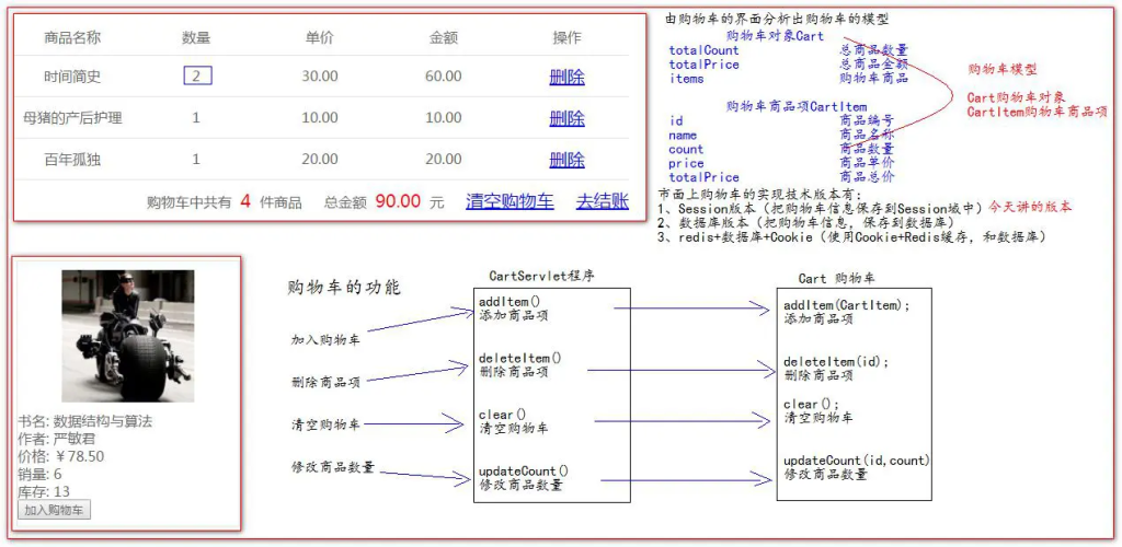 书城项目-购物车模块的分析、书城项目-购物车模型的创建、书城项目-购物车功能方法的实现和测试、书城项目-添加商品到购物车功能的实现、书城项目-购物车的展示、书城项目-删除购物车中的商品项、书城项目-清空购物车的实现、书城项目-修改购物车商品数量、书城项目-首页购物车数据展示、书城项目-订单模块的分析、书城项目-创建订单模型的数据库表、书城项目-编写订单模块的两个数据模型Order和OrderItem、书城项目-编写订单模块的Dao和测试、书城项目-编写订单模块的Service和测试、书城项目-结账功能实现,生成订单、书城项目-解决生成订单的bug