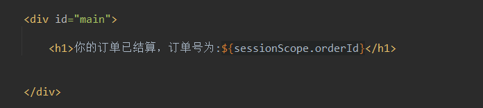 <h1>你的订单已结算,订单号为:${sessionScope.orderId}</h1>