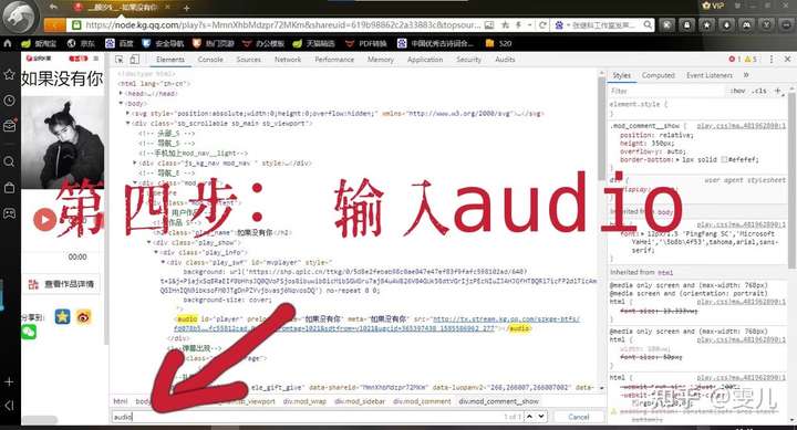 弹至图五界面后,注意观察界面最下部,找到标注处输入“audio”,然后按回车键