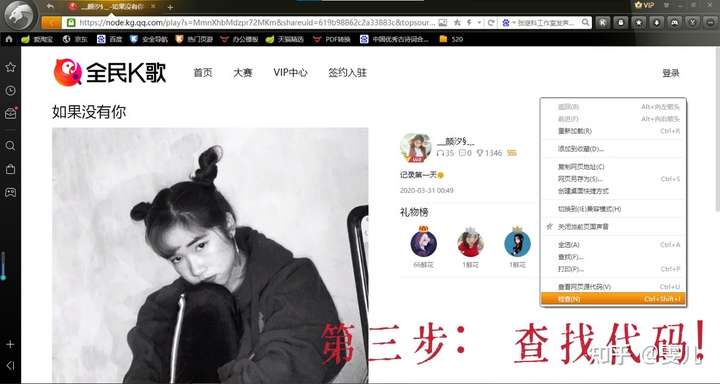 第三步(查找):右键点击页面任何空白处,选择“检查”,跳转至代码页