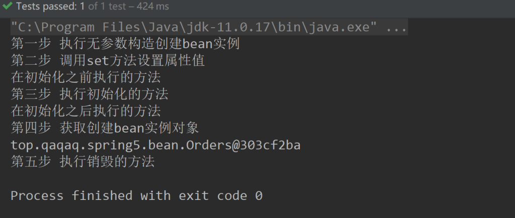 <bean id="orders" class="top.qaqaq.spring5.bean.Orders" init-method="initMethod" destroy-method="destroyMethod">