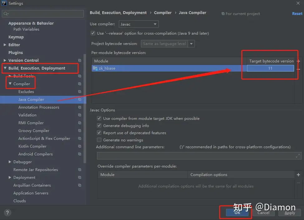- 继续ctrl+shift+s,或直接去File里找Settings打开,在打开的页面中找到Build开头的那一串,接着找它下面Compiler下的java compiler,右侧还要修改成自己所使用的java版本