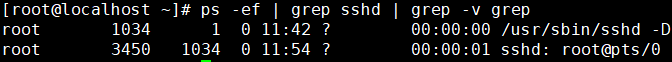 仔细观察一下就能发现,这其实是grep命令本身。因为grep命令运行过程中本身也是一个进程,“grep sshd”正好也匹配sshd,所以就被选中了。但是这是一个干扰项,并不是我们真正要查询的内容,所以需要把它从查询结果中排除。