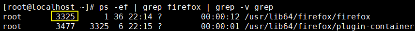 ③使用kill命令结束火狐浏览器进程