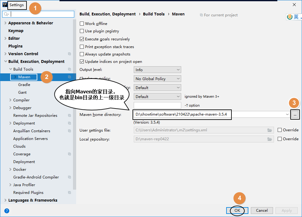 配置之后,IDEA 会根据我们在这里指定的 Maven 家目录自动识别到我们在 settings.xml 配置文件中指定的本地仓库。