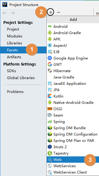 另外,对于 IDEA 2018 诸版本没有自动生成 Web 设定,那么请参照下面两图,我们自己创建: