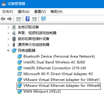 虚拟机是VMWare虚拟出来的计算机,这个虚拟出来的计算机中包含所有的硬件。例如:CPU、内存、硬盘、光驱……等等。而为了实现Windows和虚拟机Linux能够互相连通,VMWare还在Windows系统中创建了虚拟硬件:虚拟网卡,如下图。有了虚拟网卡,才能创建对应的网络连接。