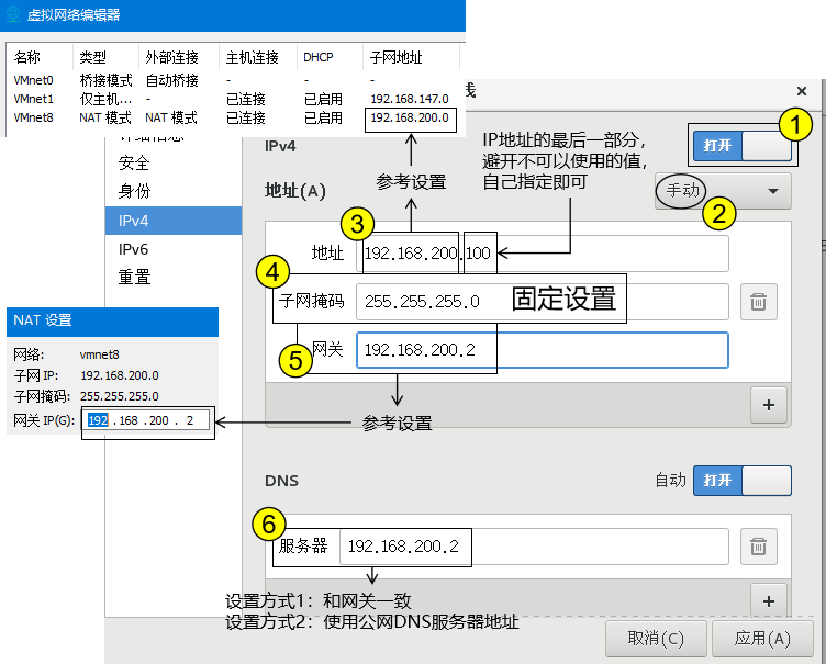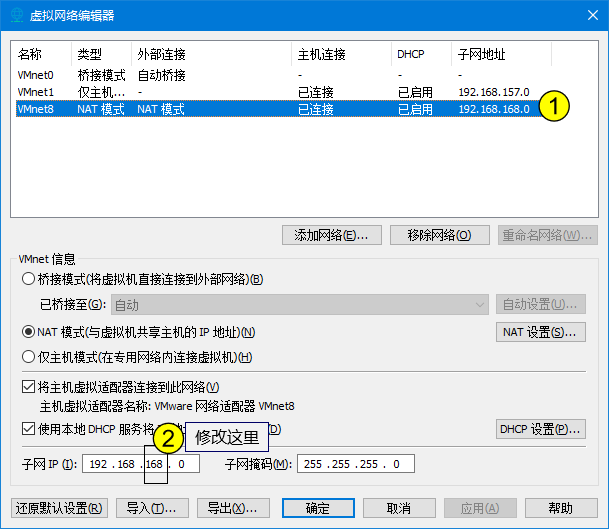 - 第六步:把NAT模式所使用的网段还改成原来我们使用的网段