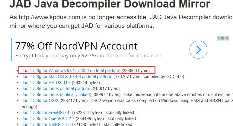 1.2)下载Jad的反编译工具:https://varaneckas.com/jad/