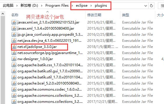 2、将net.sf.jadclipse_3.3.0.jar拷贝到eclipse的plugins目录下