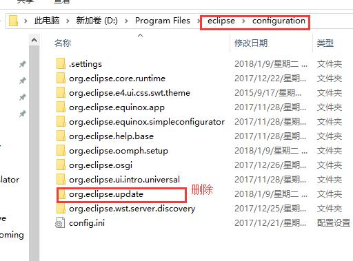 3、再删除eclipse的configuration目录下org.eclipse.update文件
