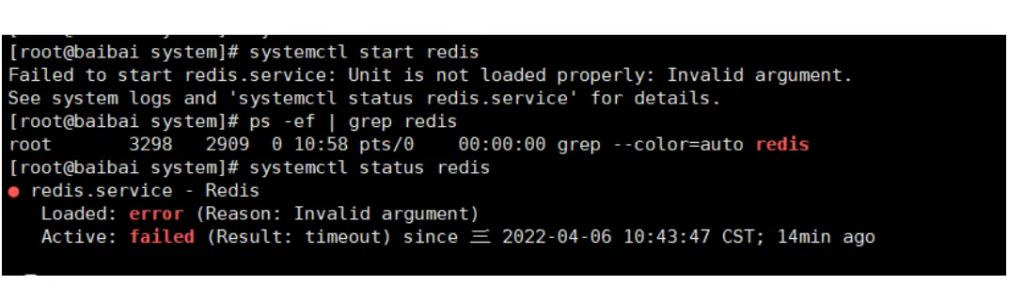 在Linux系统将redis设置开机自启动时遇到的错误:Job for redis.service failed because a timeout was exceeded. See “systemctl status redis.service” and “journalctl -xe” for details.