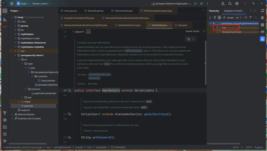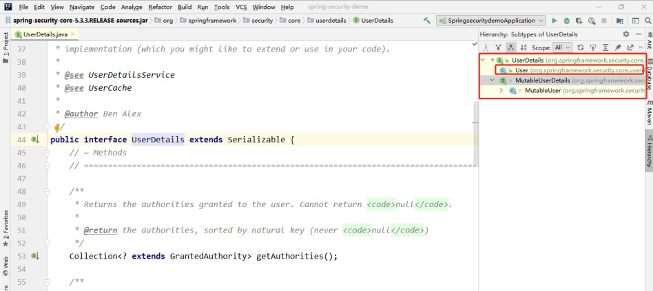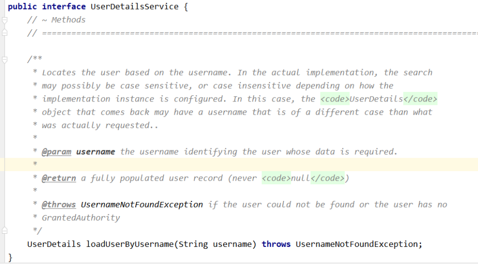 如果需要自定义逻辑时,只需要实现 UserDetailsService 接口即可。接口定义如下: