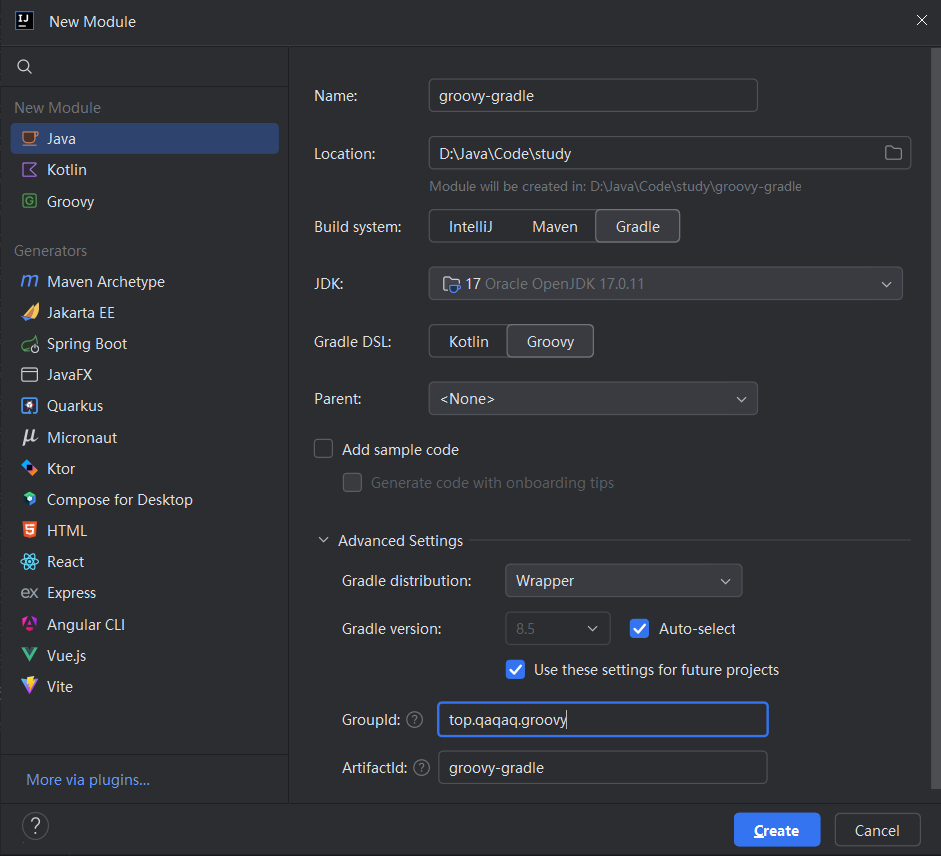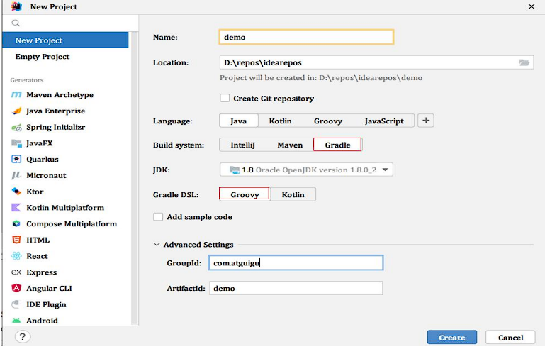 第一步:创建由 Gradle 管理的项目