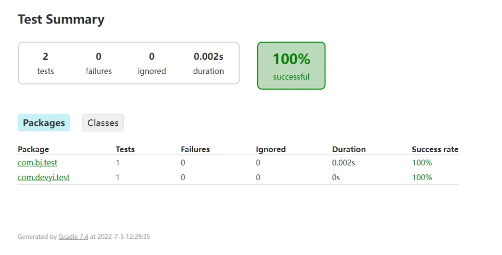 测试任务自动检测并执行测试源集中的所有单元测试。测试执行完成后会生成一个报告。支持JUnit 和 TestNG 测试。