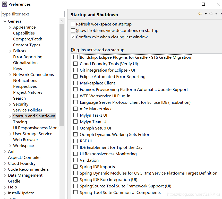 window->preference->startup and shutdown中所有选项清掉。开eclipse会变很快
