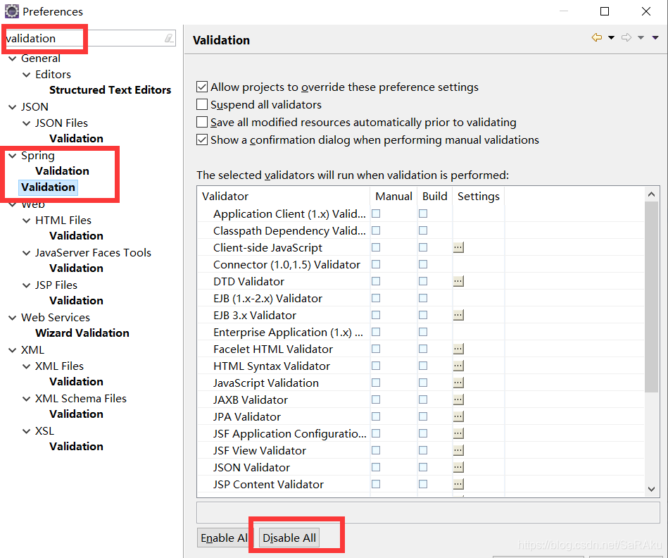 搜Validation,把看到类似下面这玩意的选项disable掉。