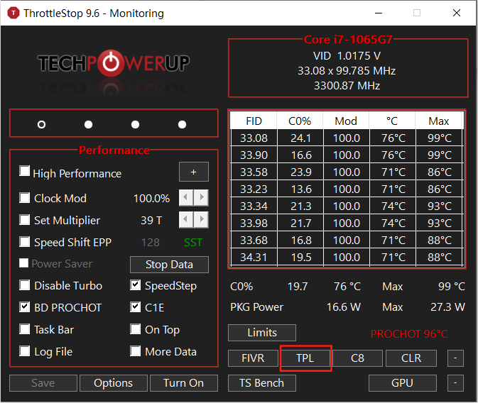 i7-1065G7 使用 ThrottleStop 调整功耗记录