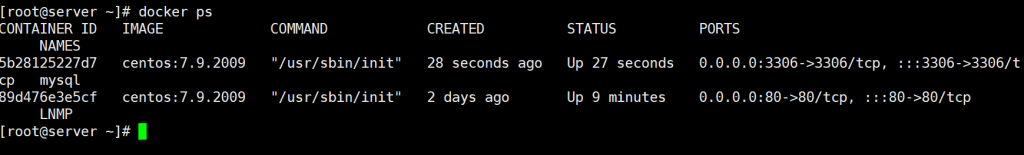 docker run -itd --name mysql -p 3306:3306 --privileged=true centos:7.9.2009 /usr/sbin/init