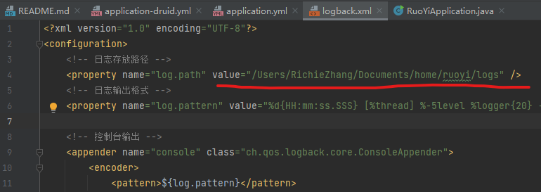 编辑src/main/ resources目录下的logback.yml 文件
